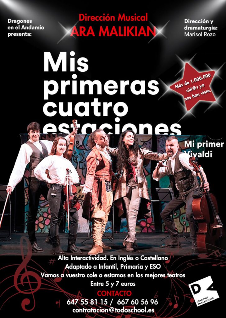 Espectacular y divertido concierto didáctico inspirado en las 4 estaciones de Vivaldibajo la Dirección musical del prestigioso violista y compositor ARA MALIKIAN e interpretado por sus mejores músicos.