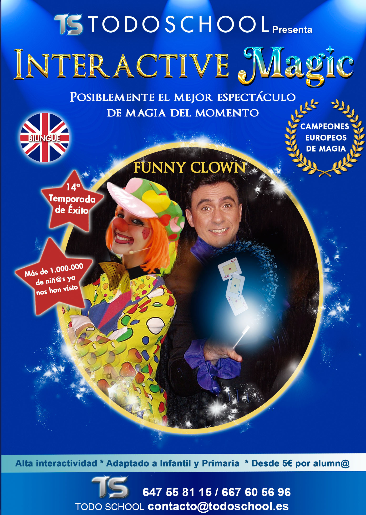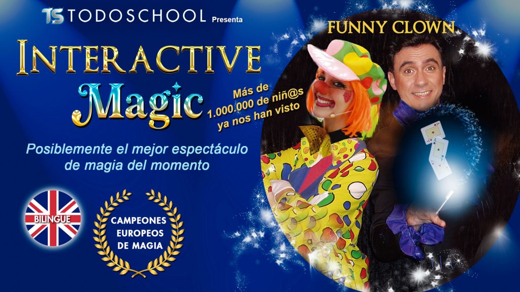 INTERACTIVE MAGIC es un espectáculo divertido y didáctico que está dirigido a alumn@s entre 2 y 16 años ( se adapta a cada etapa evolutiva ) y que oferta una gran variedad de temáticas destacando HALLOWEEN E INTERACTIVE MAGIC, en los cuales, se fomenta en todo momento la participación del alumnado.